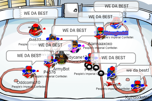 Today, we logged on to Toboggan for a Penguin Patrol Event! We maxed a total of 12 and averaged around 11! I appreciate everyone who was able to come out and have fun with us at today’s event! Our first room was Iceburg, then our second was the Ice Rink and we ended it off in the Mine Interior! Unfortunately, today we got raided again, but we’ll always continue and never back down! Love you all!