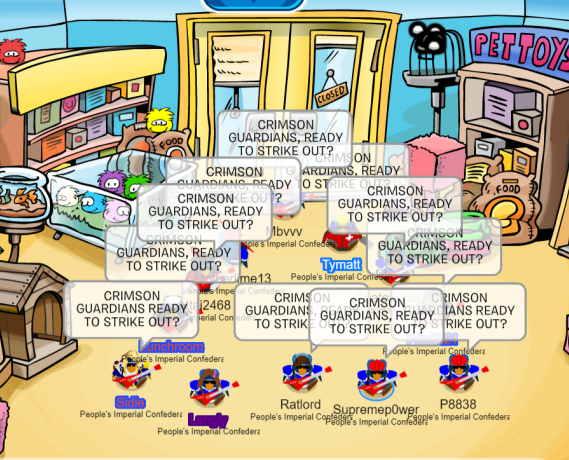 Today, we logged onto Wool Socks (CPATG) for a fun tournament training! We prepared, with a max of 12, for our battle against Crimson Guardians tomorrow. Our first room was the Cove, second was the Forest, where Admiral Lizzie praised her rock again. Finally, our last room was the Pet Shop! Thank you to everyone who came! Don’t forget about our battle tomorrow, let’s show CG what we’re made of!