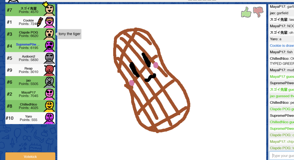 Today the People’s Imperial Confederation gathered to play another session of Skribbl.io! With a total of 20 PIC members attending, we had a lot of laughs! After the games were complete, three winners emerged victorious: Sara, Phoebe, and Cookie! Congratulations to the winners of all three games and thank you to everyone who attended! See you at the next event!