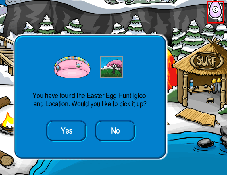 Once you have clicked on each of the eggs and collected them, click on the egg icon at the top-right corner of your screen to see a prompt, allowing you to obtain the exclusive new igloo and igloo environment!