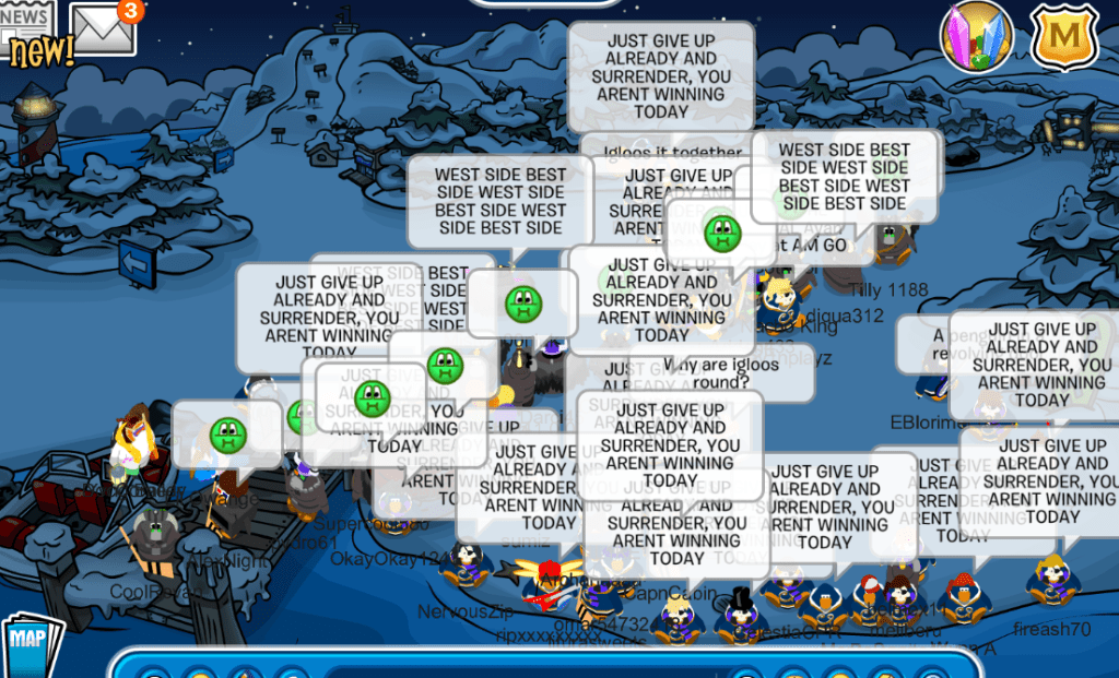 Yesterday we logged onto Club Penguin Rewritten for another battle against the Water Vikings and Western Bloc. With a max troop size of 11 we successfully invaded the server Snow Day, winning all 3 rooms with the support of our fantastic Vengeance Alliance allies. Let us maintain our momentum as we continue to find success on the Eastern Front. For the People!