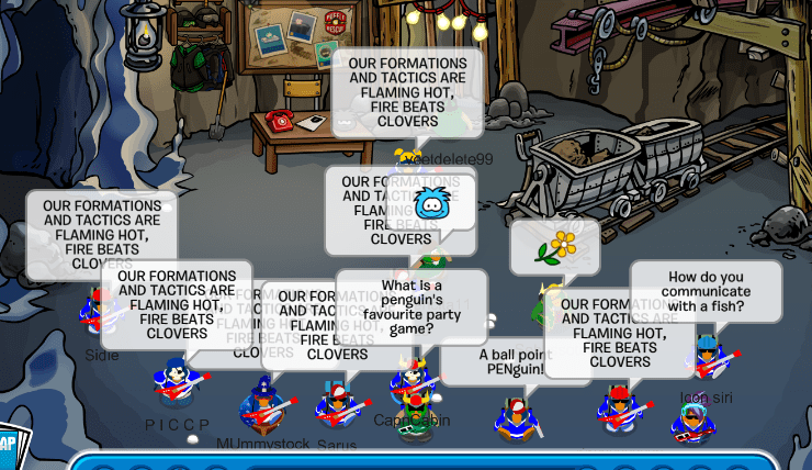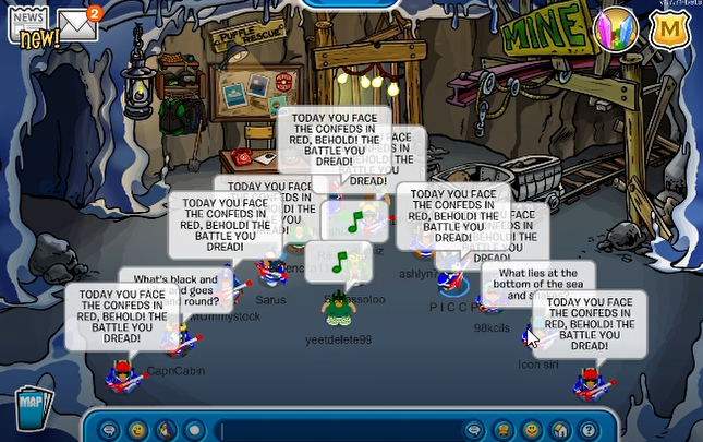 Today we logged onto Marshmallow for a fun practice battle against our allies the Army Of Club Penguin! We gathered at the Iceberg with a fierce max of 13 penguins in preparation for our friendly battle. We marched off to combat, battling it out at the Ice Rink, Iceberg, and Mine Interior all while performing spectacular tactics and formations. A special thanks to everyone who participated today, and of course to ACP for battling us!