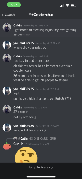 For the sake of our staff and members also affiliated to Cabin’s server, we aren’t going to name drop them here and put them on blast. However, after joining Cabin’s server (before being banned), we counted at least 12 stolen staff members. (If Cabin denies this we will release screenshots) It should also be noted that although Cabin has many active members that are not PIC affiliated, his successes in this server were built substantially off of the backs of PIC and the members he stole into his server.