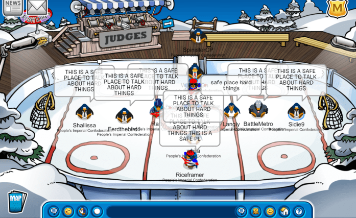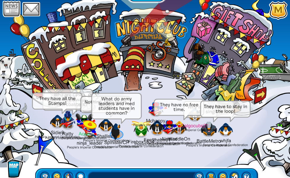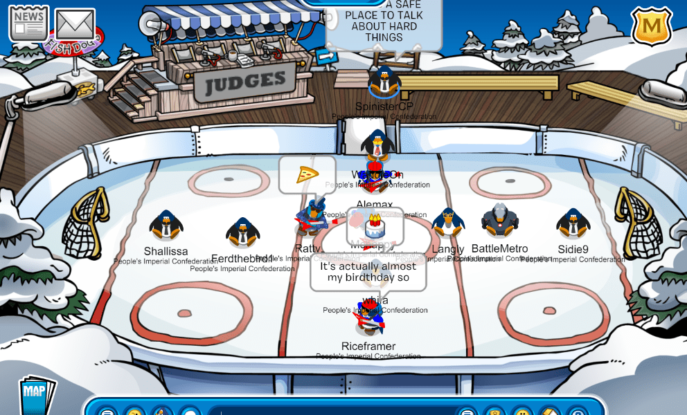 Today, the AUSIA Division of the People’s Imperial Confederation logged on in CPA Battleground in the server Battleground to train for our upcoming battle against Warlords of Kosmos in the Semi-Finals of the February Forte tournament scheduled for Sunday. We begin gathering members and warming up for the event in the Town, and proceeded to the Stadium, where we did some fabulous tactics, and finally moved onto the Snow Forts for the conclusion of the event. We reached a maximum of 15 penguins online and successfully accomplished our goal, thanks to all our allies & visitors who showed up to support us in the event. Shoutout to SIDIE, Ferd and Kurumi for leading!