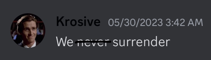 VI. The terms of this Force Treaty are open to discussion if Krosive attends an event for any army affiliated with the Sapphire Concordat wearing Item ID 1183 (Clown Hair) while repeatedly chanting “DV IS MID I DONT WORKOUT”