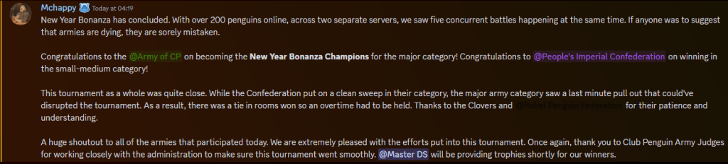 Filed under: Event Results | Tagged: beach brawl, club penguin, people's imperial confederation, people's imperial confederation club penguin, people's imperial confederation cp, pic, pic club penguin, pic cp, piccp |