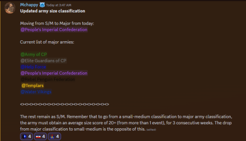 For the first time in the People’s Imperial Confederation’s history, we have achieved Major Army status.