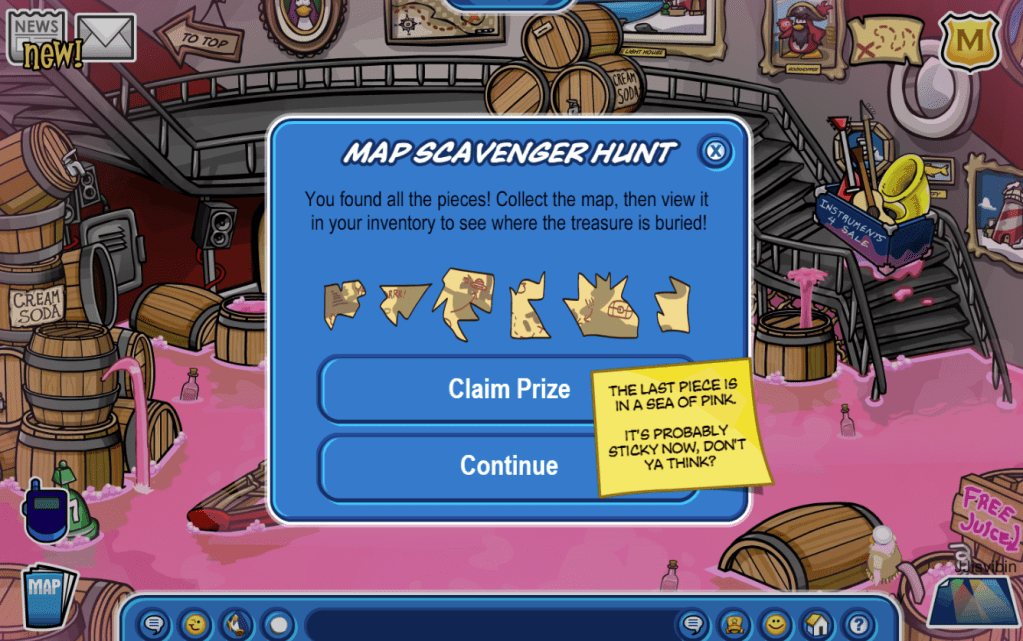 Congratulations! You’ve now found all of the map pieces for the treasure hunt. Be sure to claim your prize, Rockhopper’s Treasure Map!