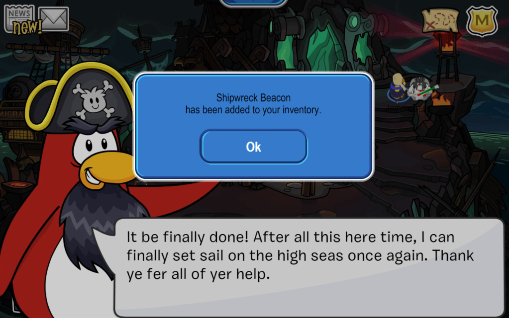 You’ll now have the Shipwreck Beacon pin, which you can equip from your penguin’s player-card!