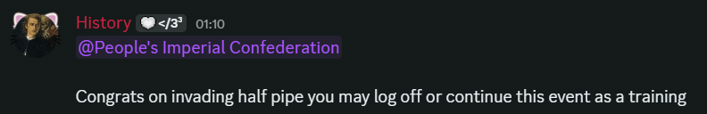 Thank you very much to History for judging our invasion, and thank you to the following people for attending: