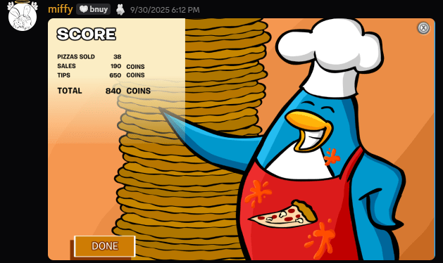 This Tuesday September 30th, we once again logged onto Club Penguin Journey to host our weekly Tournament Tuesday! Today’s week was a PIZZATRON 3K TOURNAMENT! We were originally going to do it in brackets but we realized that would take WAY TOO long so we decided on everyone doing one game and whoever had the highest score would win!