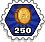 This stamp requires obtaining 250 coins in a single game. The in-game score required for this amount is 2500.