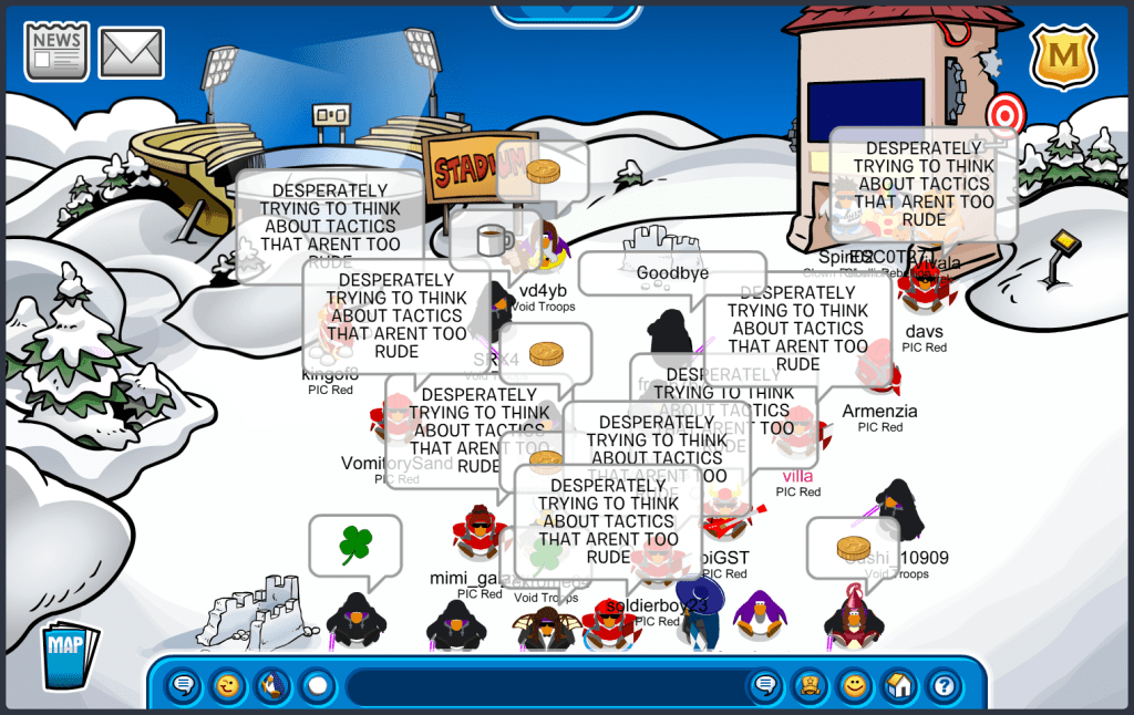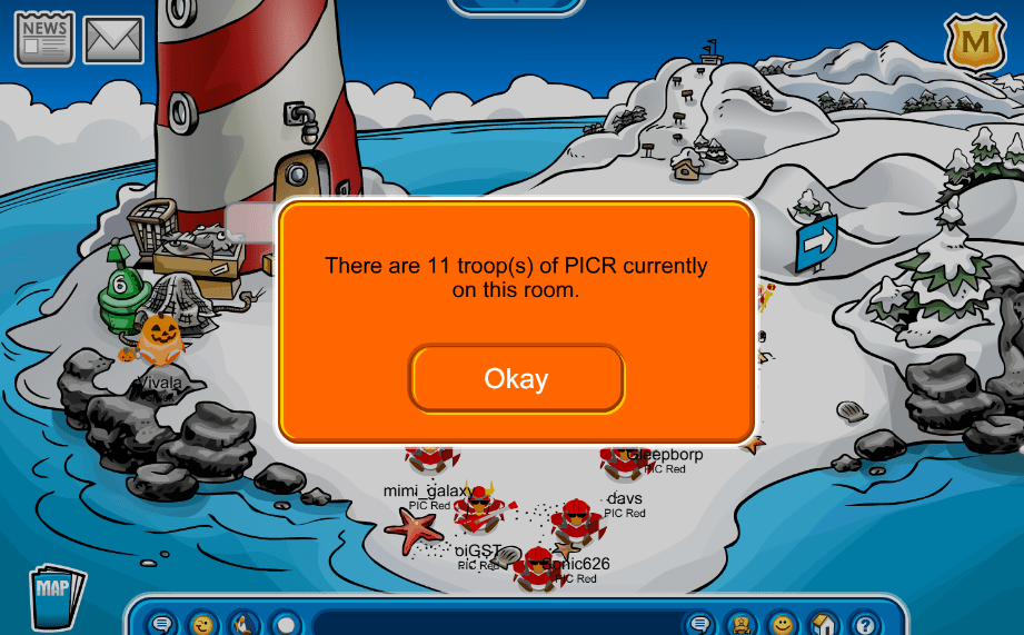 Today, October 18th, we logged on to Club Penguin Battleground for our practice battle against Void Troops and Scarlet Republic! We did amazingly, taking a room all for ourselves and tying overall with a score of 1-2-1 (W-T-L) against Void Troops! Fantastic job confederates, we are all so proud of everyone who came in support to show our allies our true strength! Viva PIC!