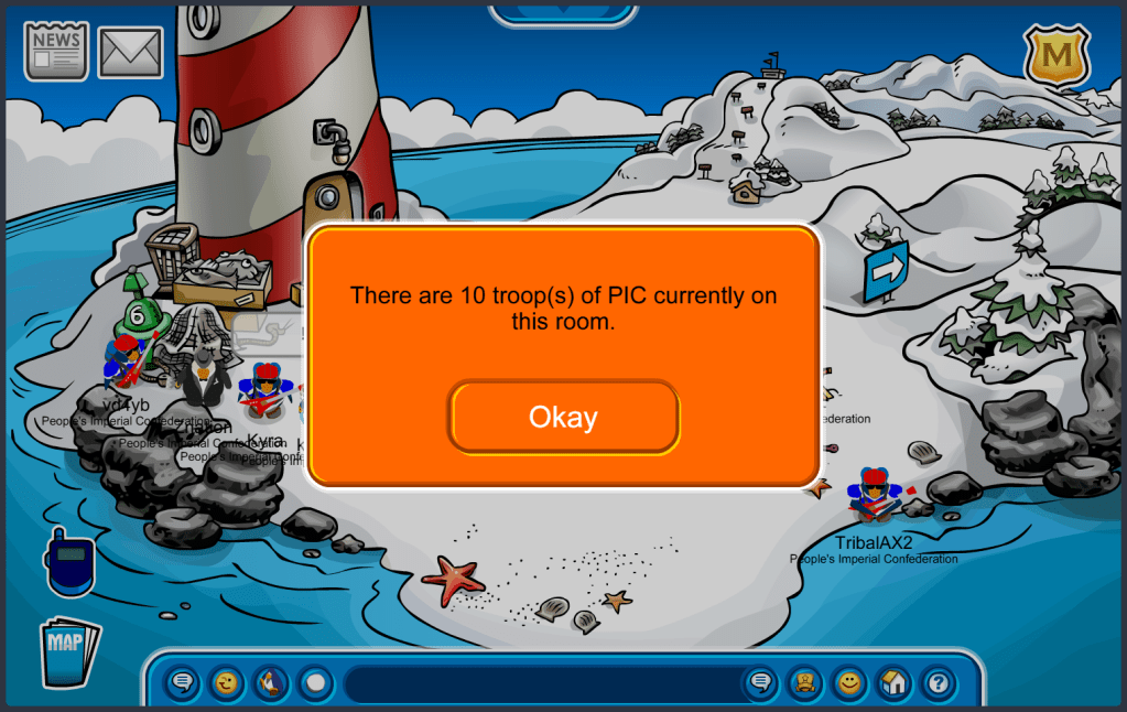 Today, October 22, we logged onto Club Penguin Battleground to attempt to invade Half Pipe! We were quick to send tactics, despite our small number who were actually active, and successfully took Half Pipe!