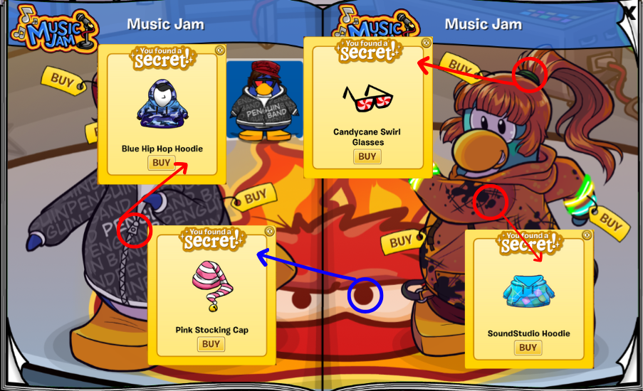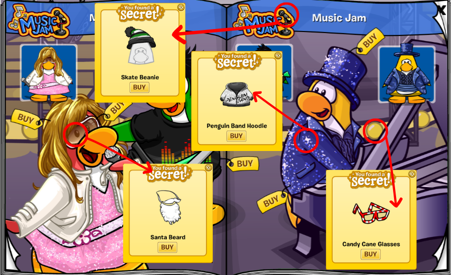 – The microphone in the Music Jam logo on the right page has the Skate Beanie for 300 coins