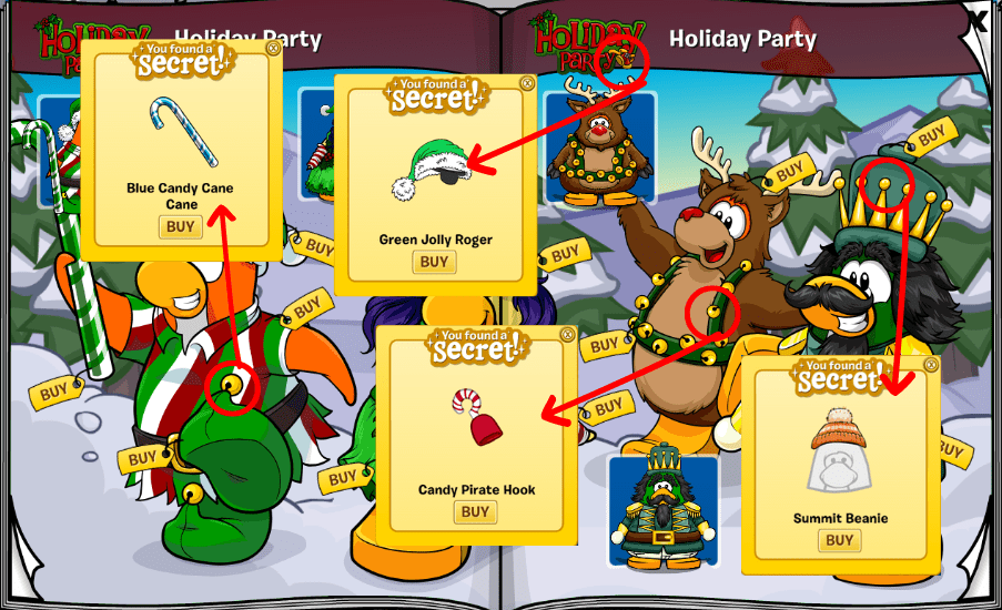 – The bell on the reindeer penguin’s harness has the Candy Pirate Hook for 150 coins