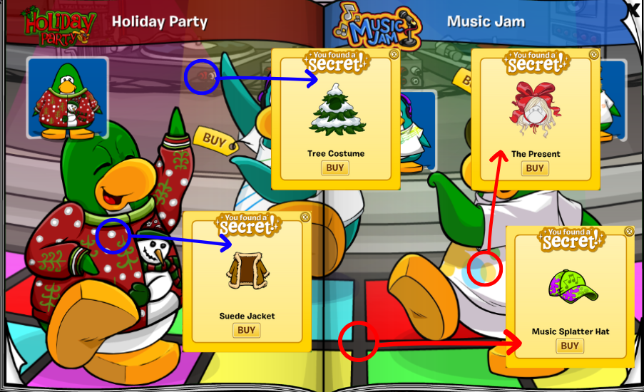 – The eyes of the penguin dressed as a tree has the Red Parka for 300 coins
