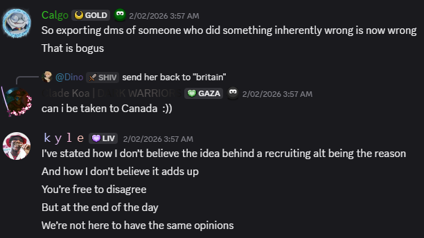 Much like the conduct discussed in previous posts, the behavior within Vice City Stories was unacceptable. The continued use of slurs, along with references to rape, made it evident that there had been no self-reflection, remorse, or understanding of fault. Considering that Vice City Stories was created while PIC was still open and included several PIC HCOM members, the standards of conduct within this chat should have been much higher.